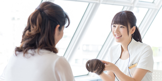 ウィッグのお手入れも大事ですが、地毛のケアも重要。メーカー、店舗によってはウィッグのケアだけでなくスカルプマッサージやカット、ヘアカラーなど地毛のお手入れも可能。地毛とウィッグの両方の目線から考えたサポートをしてくれるので、気になる方は是非試してみて下さい。
